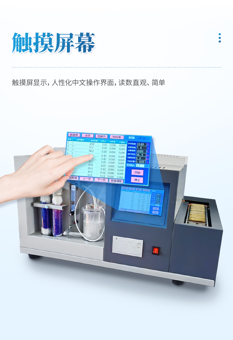 智能定硫儀是我公司自主研制的帶新一代全自動儀器。依據庫侖滴定法的原理(參見GB/T 214—2007)制成的。由單片機系統進行高溫爐的溫度控制和庫侖滴定結果的測量,由7寸液晶顯示屏顯示,并向單片機系統發送相應控制命令,由單片機系統獨立完成相應工作。