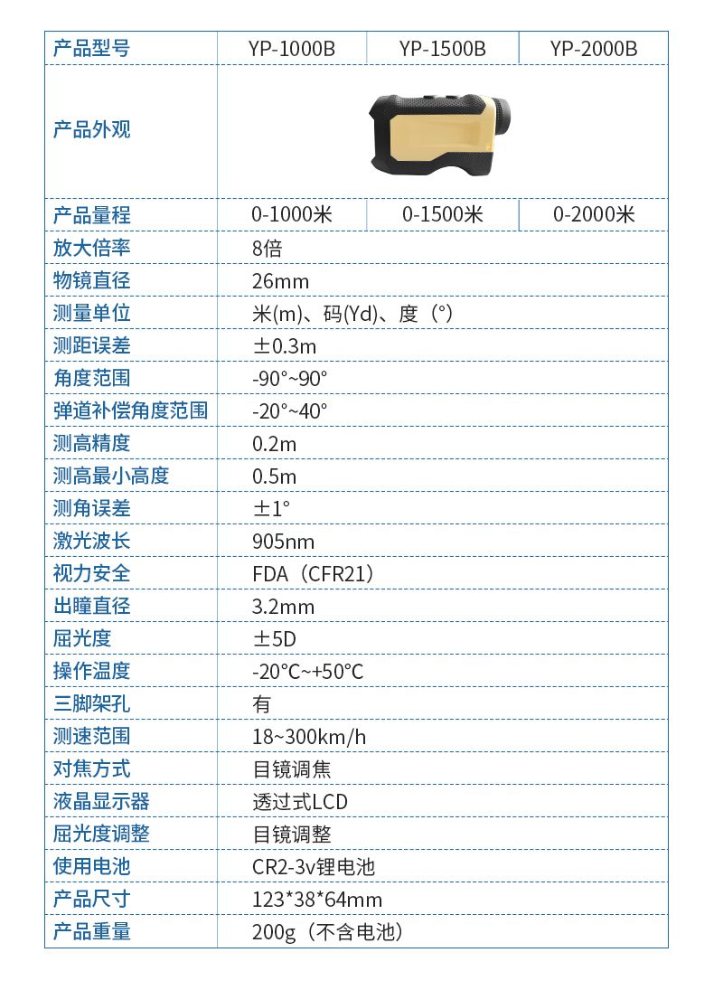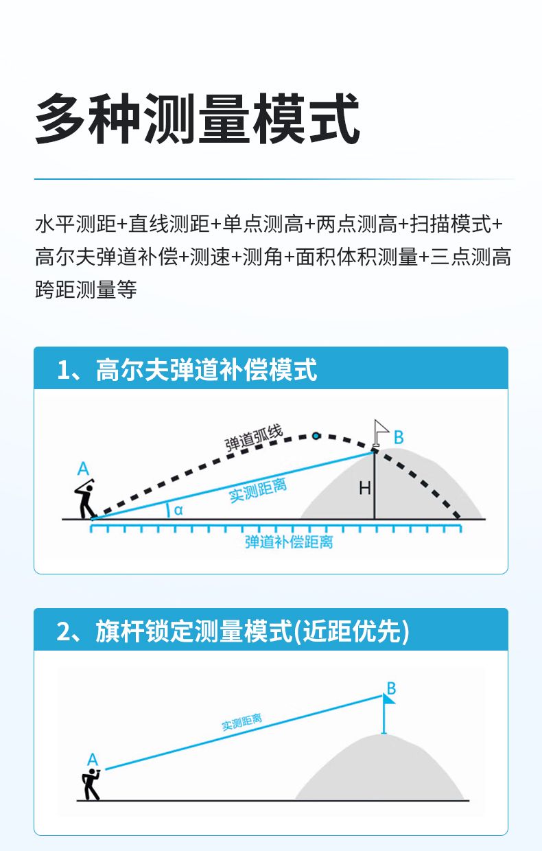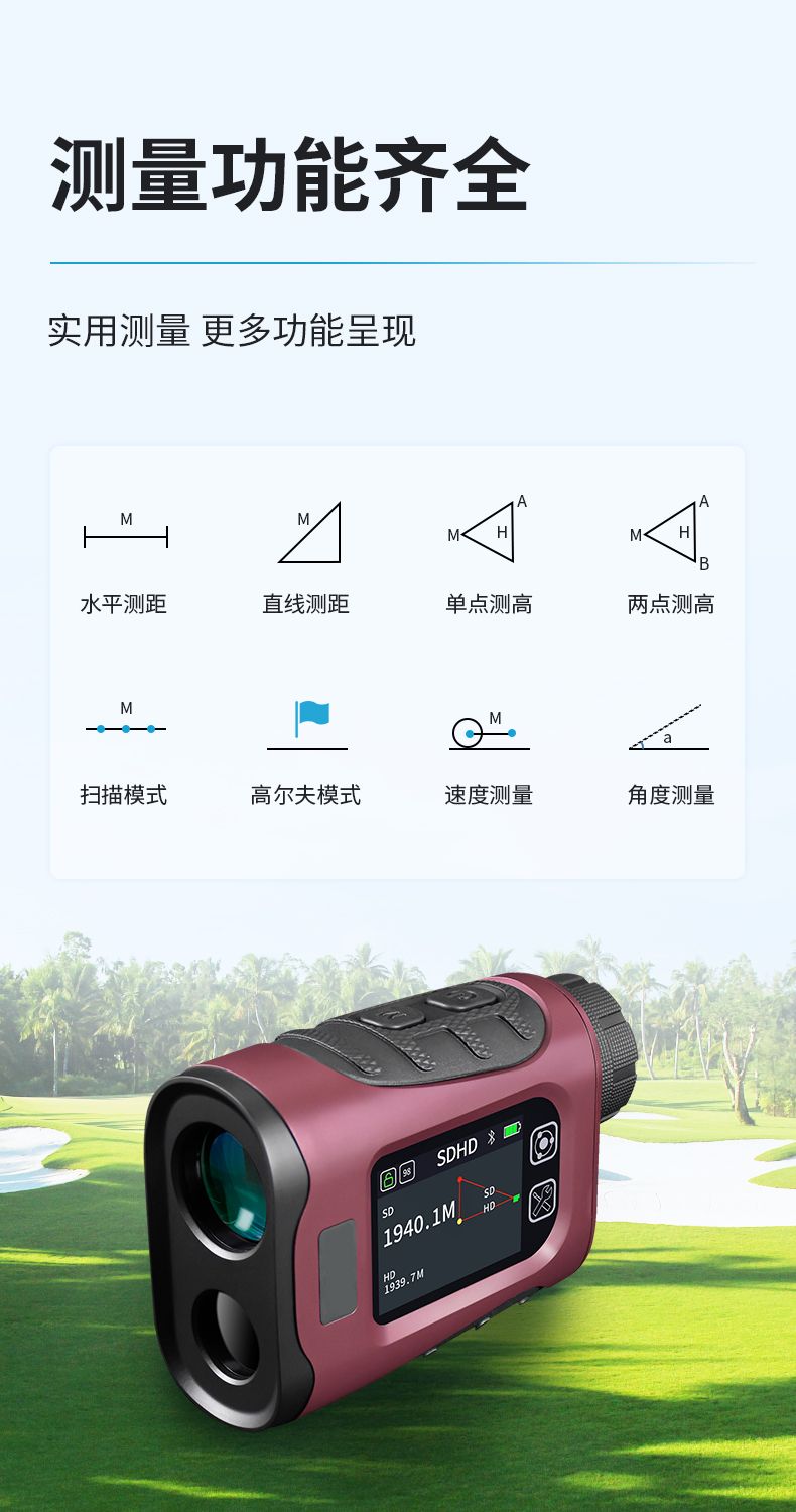 產(chǎn)品功能:測距/測角/測速/高爾夫彈道距離/兩點(diǎn)測高