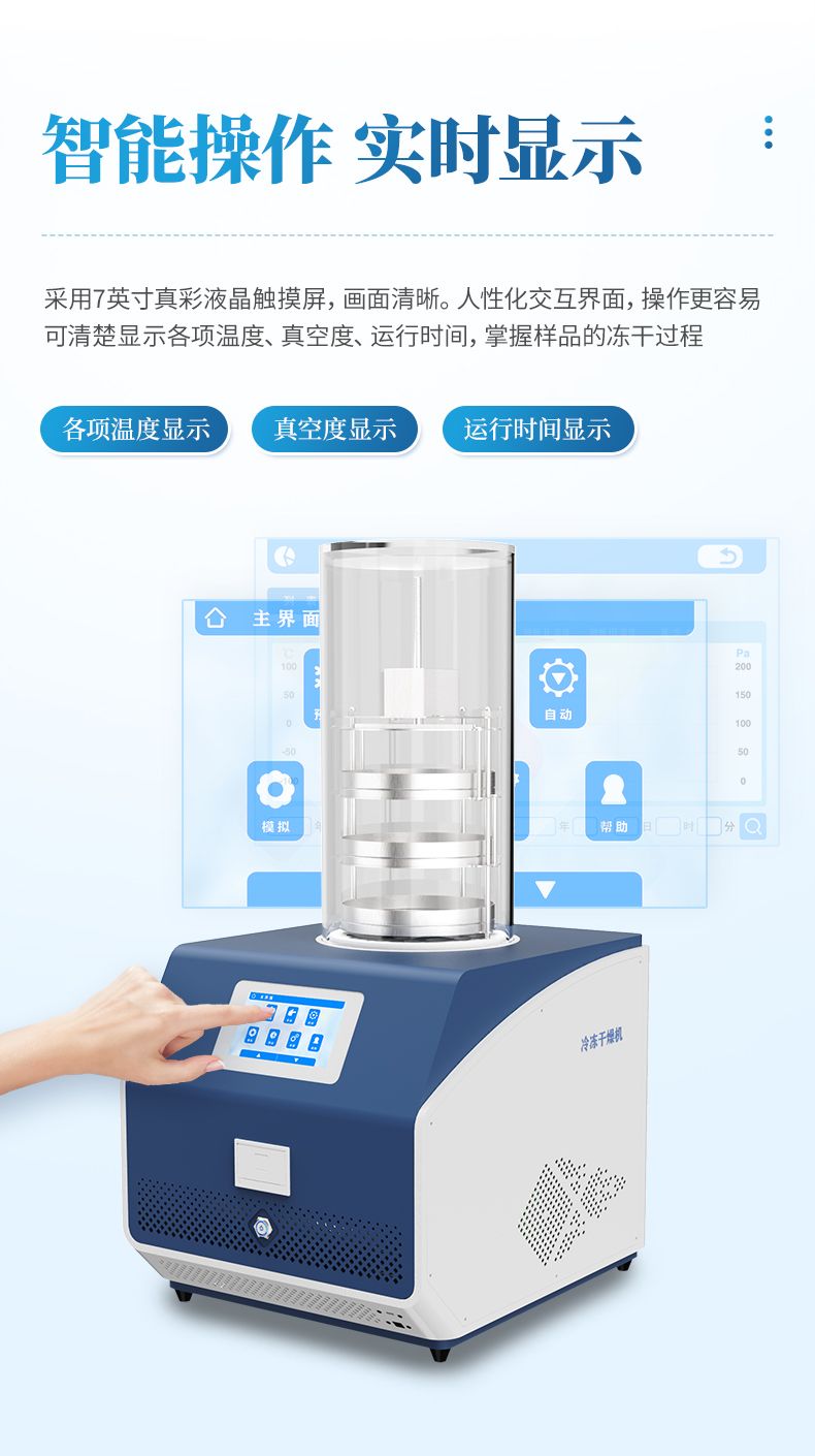 2. ?食品行業?:在食品行業中,凍干機用于果蔬、肉類、水產品、調味品等食品的加工和保存。凍干技術可以保留食品的原有色澤、香氣和營養成分,延長保質期,并方便攜帶和儲存。