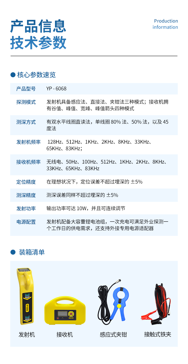 接收機(jī)頻率:無線電、50Hz、100Hz、512Hz、1KHz、2KHz、8KHz、33KHz、65KHz、83KHz(型號(hào)不同,頻率稍有差異,具體以產(chǎn)品規(guī)格書為準(zhǔn))。