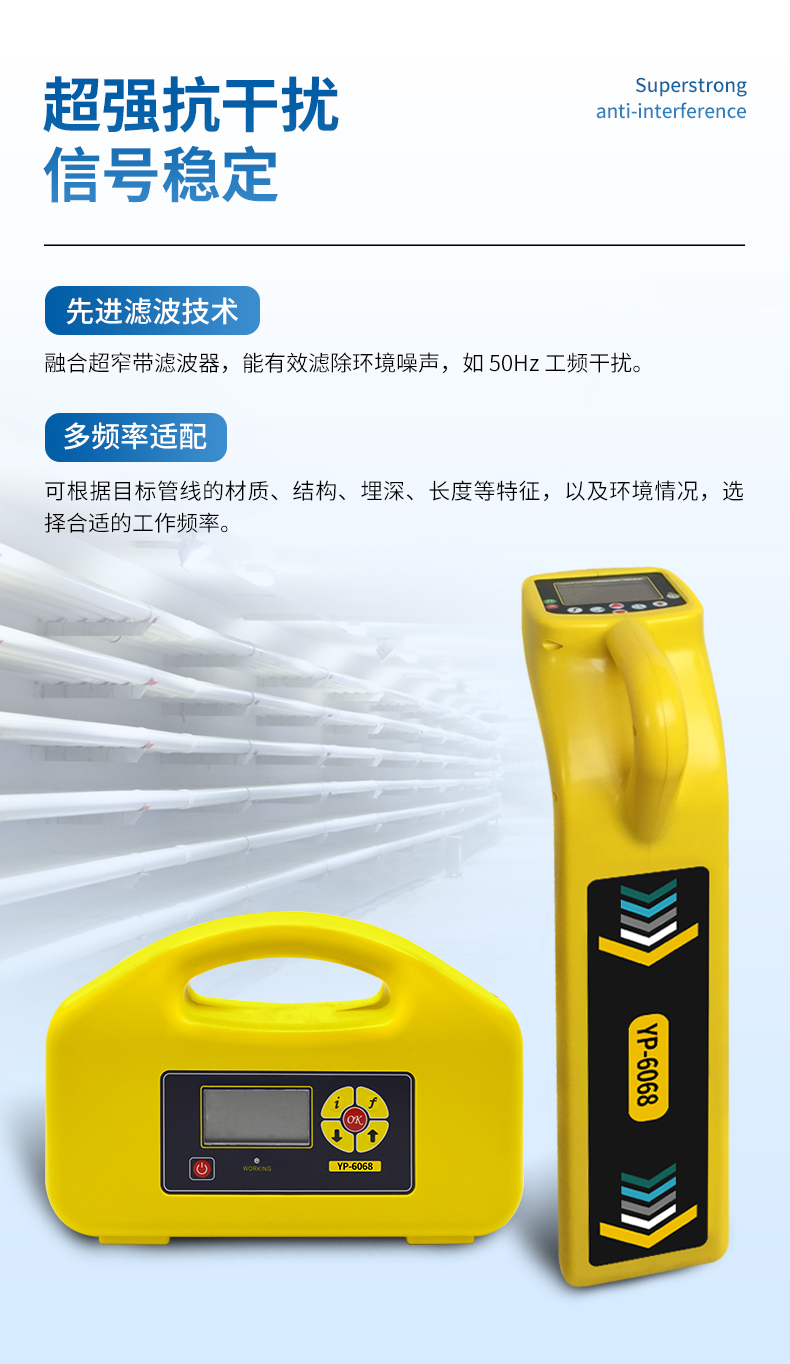 根據(jù)目標(biāo)管線特征(材質(zhì)、結(jié)構(gòu)、埋深、長(zhǎng)度等)、環(huán)境選擇合適的工作頻率。