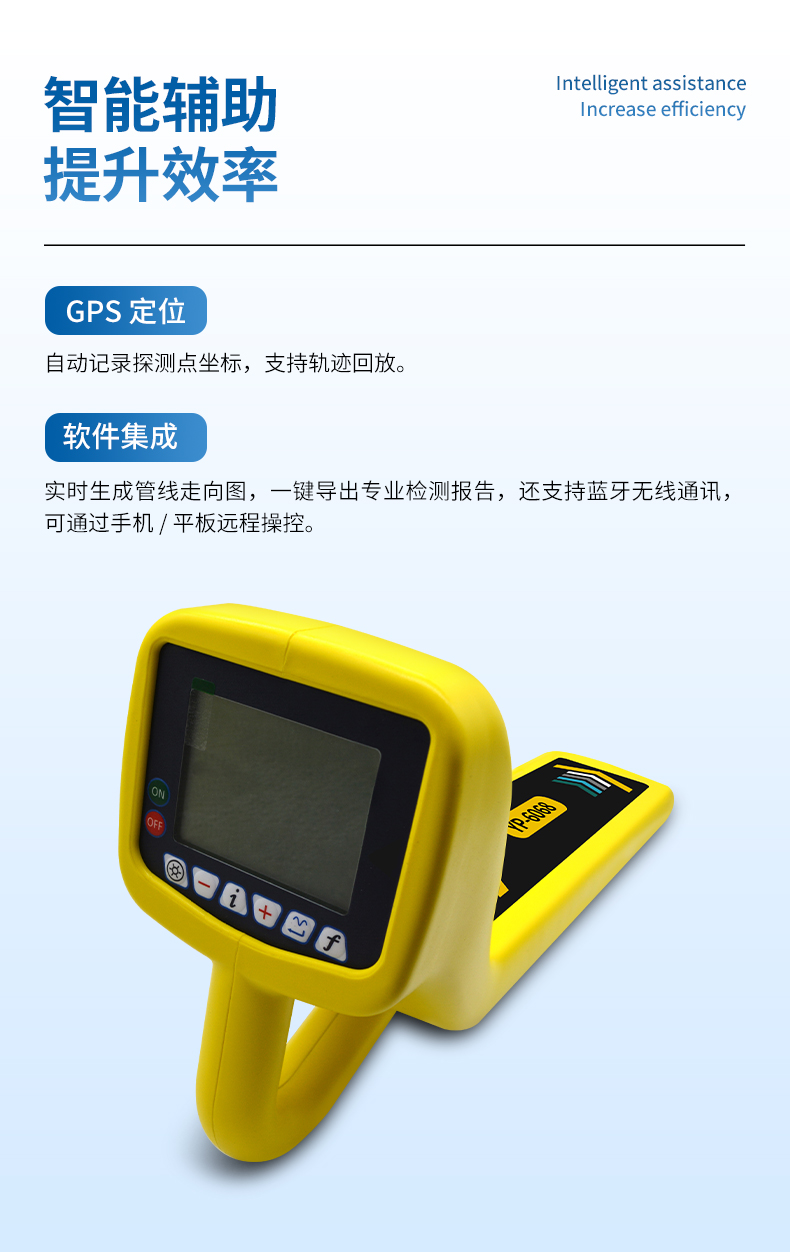 地下管線探測(cè)儀能在非開挖的情況下,對(duì)地下管道、電纜、光纜進(jìn)行精確定位和埋土深度測(cè)量,精確查找地下管道外防腐層破損點(diǎn)、埋地電纜故障點(diǎn)的位置。該儀器融合超窄帶濾波器、藍(lán)牙無線通訊、GPS定位、專業(yè)數(shù)據(jù)分析軟件自動(dòng)成圖、檢測(cè)報(bào)告自動(dòng)生成等最先進(jìn)技術(shù),具有超強(qiáng)抗干擾能力,精準(zhǔn)定位和測(cè)深,適用于地下各種金屬管線的探測(cè)和巡線、管線管理與維護(hù)、市政規(guī)劃建設(shè)、供電等部門的管線檢測(cè),是管道維護(hù)單位的必備儀器之一。