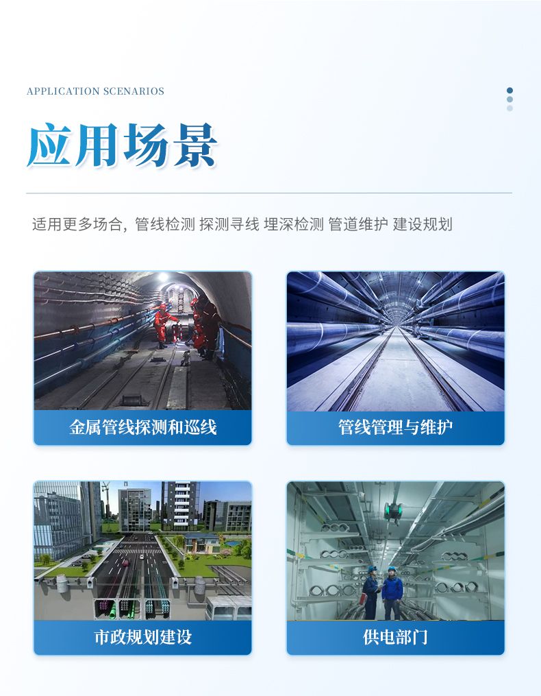 地下管線探測儀由國內(nèi)專業(yè)研發(fā)團(tuán)隊(duì)精心打造,融合超窄帶濾波器等先進(jìn)技術(shù),具有超強(qiáng)抗干擾能力、精準(zhǔn)定位和測深等優(yōu)異探測性能,適用于地下各種金屬管線的探測和巡線、管線管理與維護(hù)、市政規(guī)劃建設(shè)、供電等部門的管線檢測,是管道維護(hù)單位的必備儀器之一。