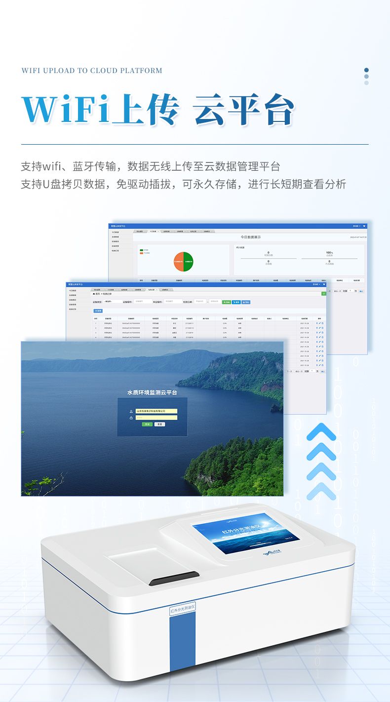 6)強大的后臺數據支持,用戶檢測完樣品后,不但可以通過打印機打印結果和保存在本地,還可以通過WIFI或4G連接互聯網上傳到云平臺數據庫中;