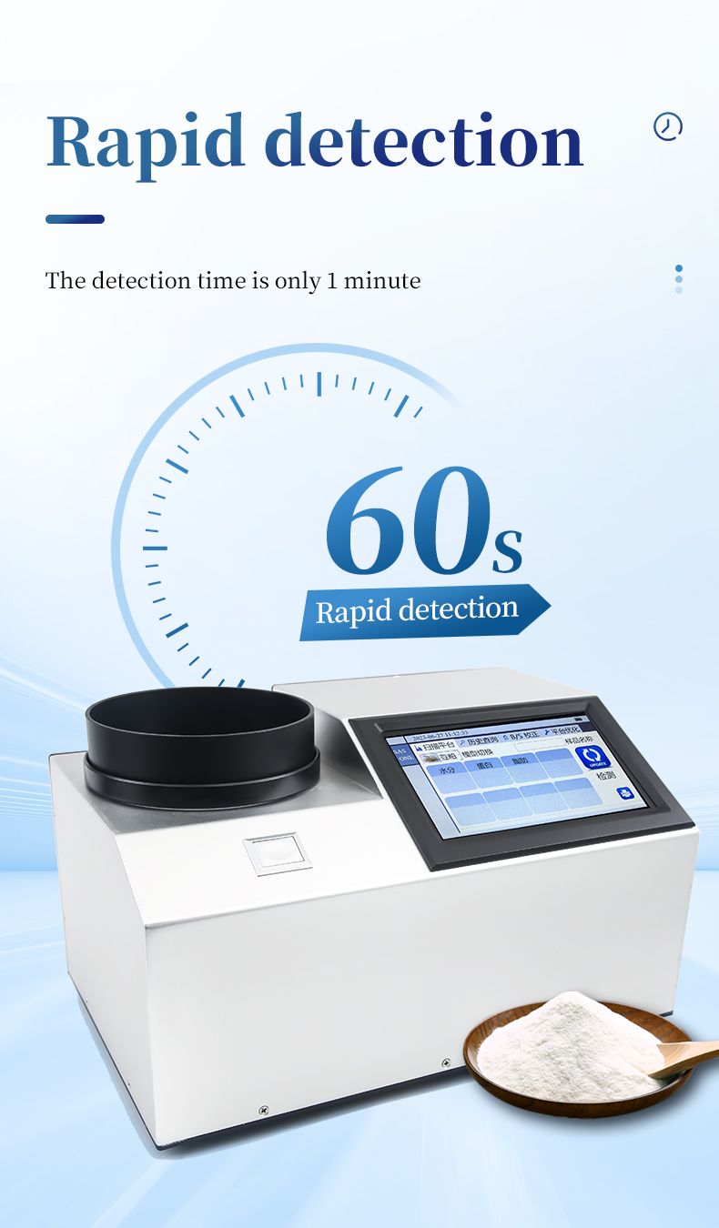 This instrument is a near-infrared (NIR) spectroscopy analyzer. It can quickly analyze the types and contents of components in different substances (such as protein, moisture, fat, fiber, ash, etc.) based on the spectra generated when the sample is irradiated by near-infrared light. Models can be added according to customer requirements.