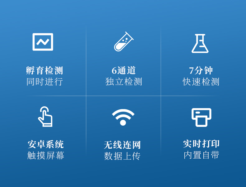 1、一體化設計,集成孵育和檢測功能同時進行,孵育完成直接檢測;