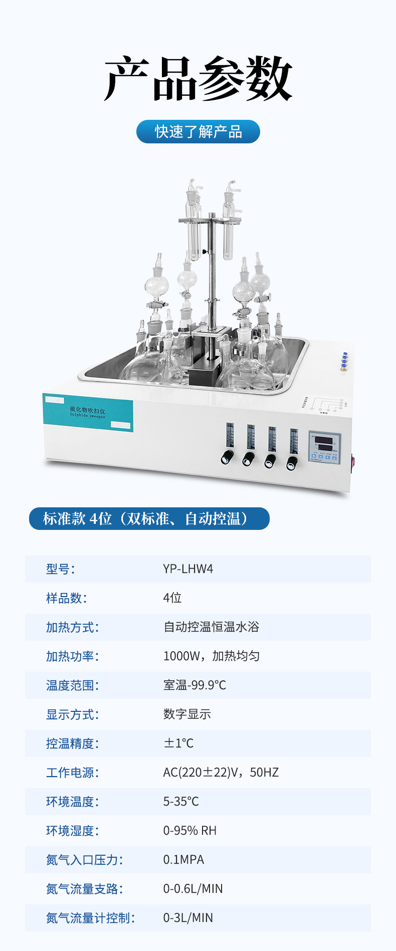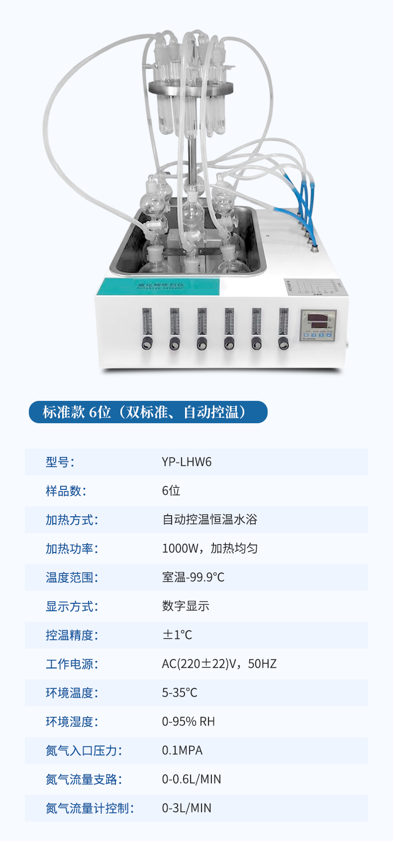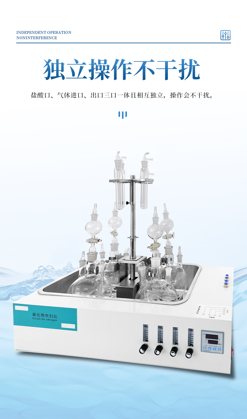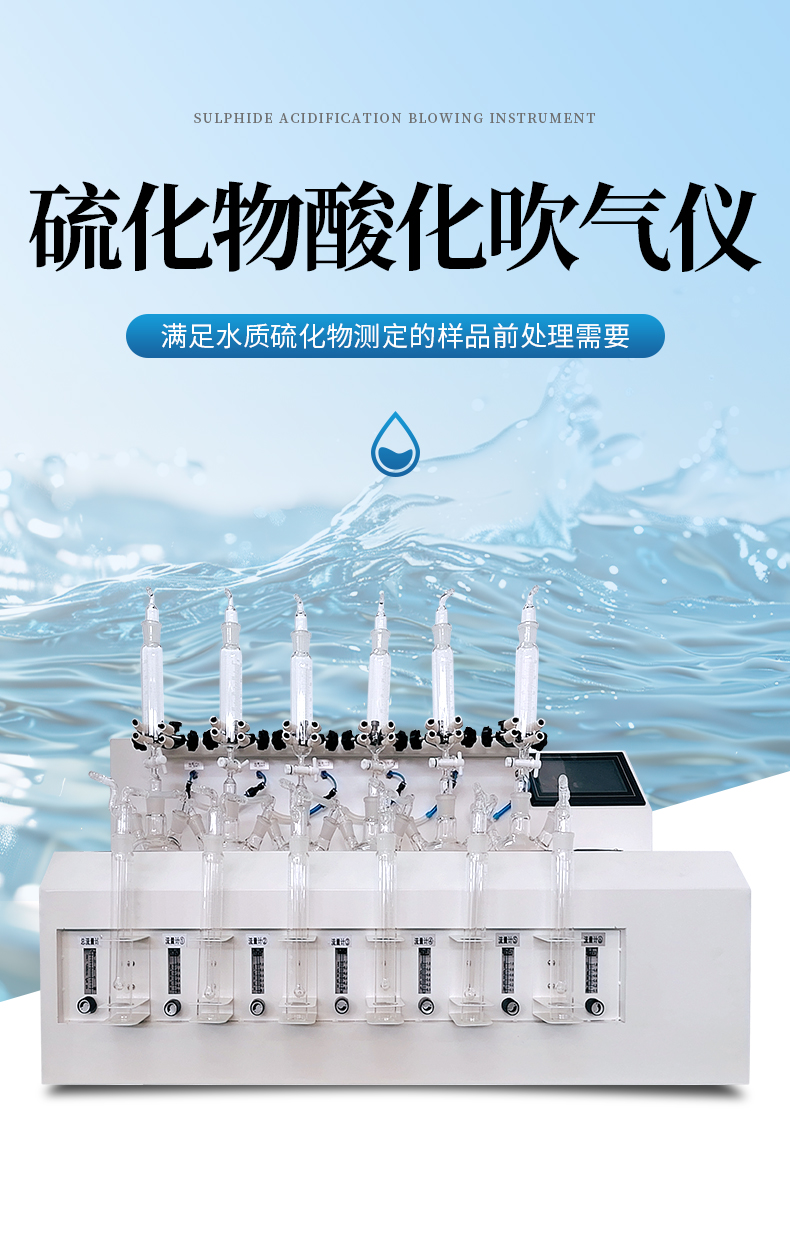 水質硫化物酸化吹氣儀根據水質硫化物的測定-亞甲基藍分光光度法(碘量法)標準開發生產的。滿足水質硫化物測定的樣品前處理需要。