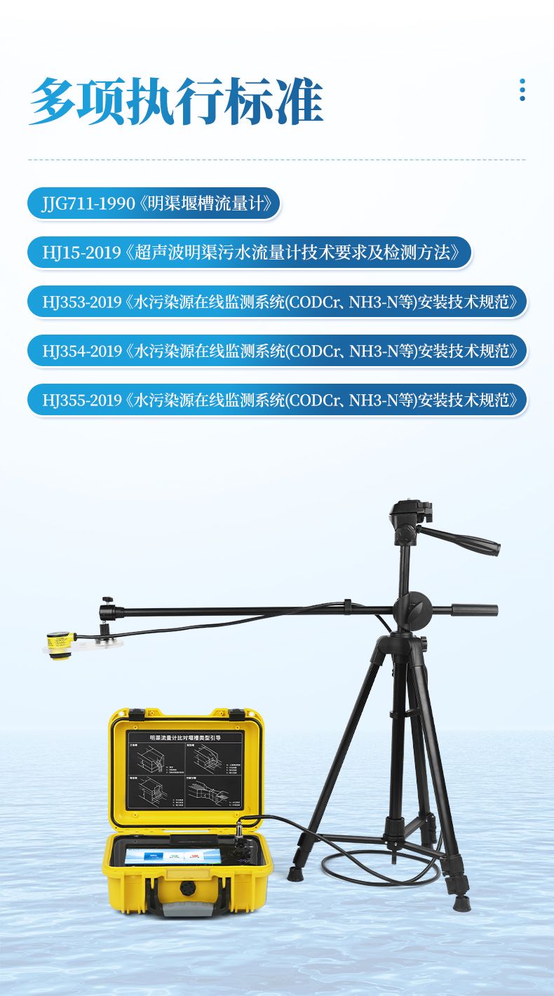 便攜式明渠流量計是專為水文監測、江河流量監測、農業灌溉及市政給排水等行業設計的一種高精度測量儀表,支持10種堰槽類型的測量,采用超聲波技術和特殊的微功耗設計方案,結合全數字信號處理技術,確保了測量的穩定性與可靠性。該設備具有廣泛的測量范圍和較高的測量精度,支持實時數據顯示、數據記錄、導出及打印等功能,操作簡便且準確度高,非常適合于需要頻繁移動進行測量的場合。同時,它依據JJG711-1990檢定規程,并參照HJ353-2019、HJ354-2019、HJ355-2019以及HJ15-2019中對流量監測單元的相關要求進行比對驗收,確保了其在水利工程、環境監測、農業灌溉等領域的適用性和準確性。