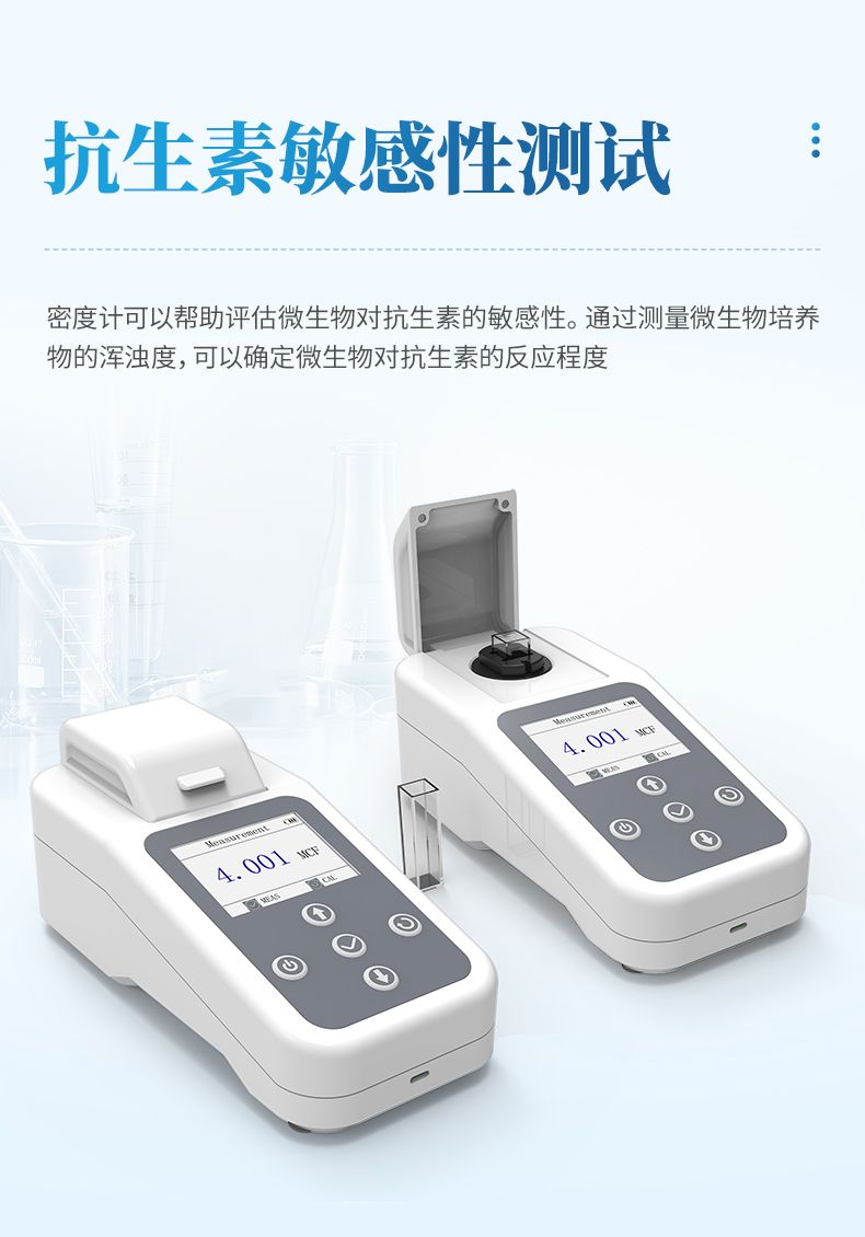 抗生素敏感性測試:密度計可以幫助評估微生物對抗生素的敏感性。通過測量微生物培養物的渾濁度,可以確定微生物對抗生素的反應程度。