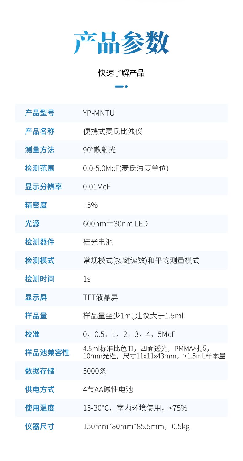 | 檢測范圍 | 0.0-5.0McF(麥氏濁度單位) | |