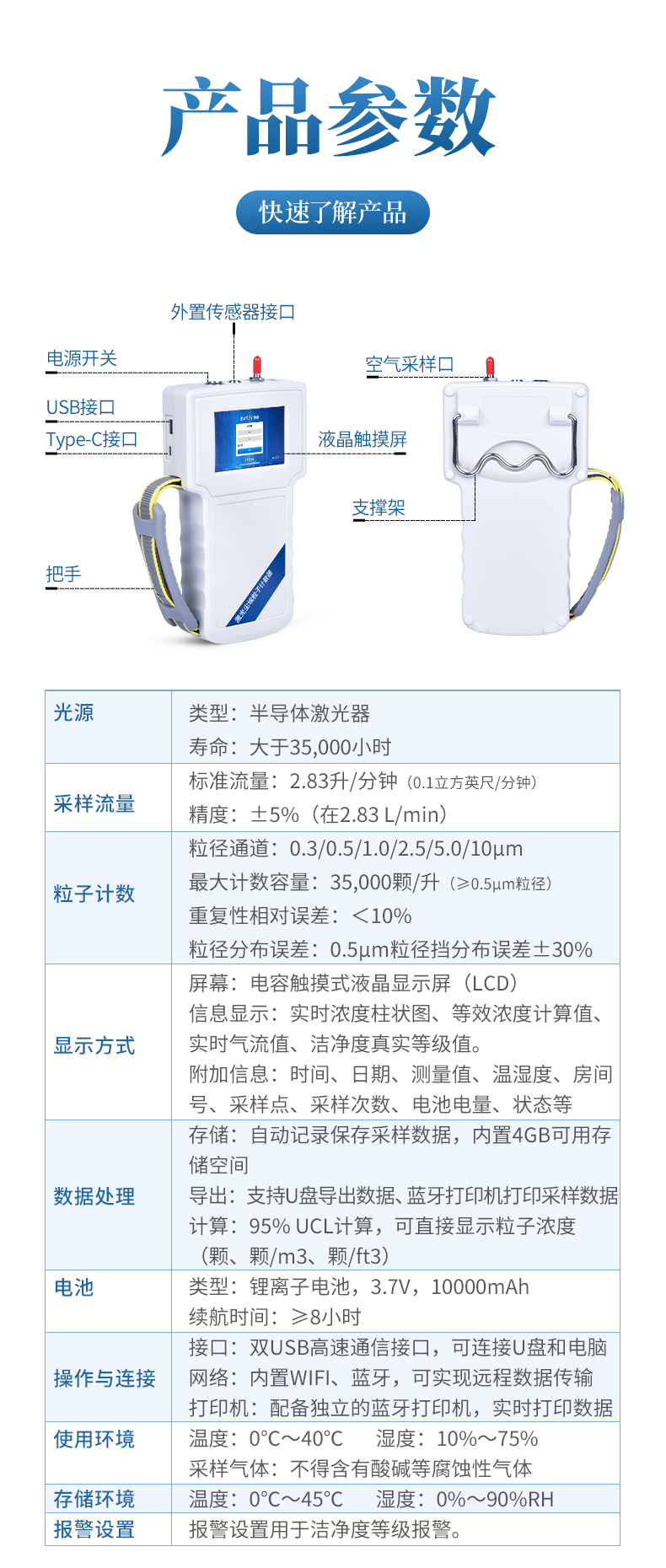 最大計(jì)數(shù)容量:35,000顆/升(≥0.5μm粒徑)
