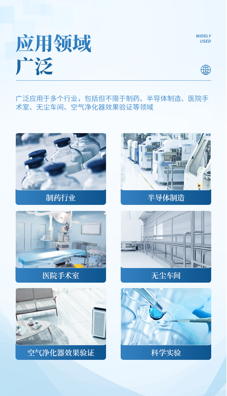 手持塵埃粒子計(jì)數(shù)器是一種便攜式的檢測設(shè)備,專門用于快速測量空氣中的塵埃、顆粒物以及其他微小顆粒的數(shù)量和大小分布。這類儀器廣泛應(yīng)用于多個行業(yè),包括但不限于制藥、半導(dǎo)體制造、醫(yī)院手術(shù)室、無塵車間、空氣凈化器效果驗(yàn)證等領(lǐng)域。