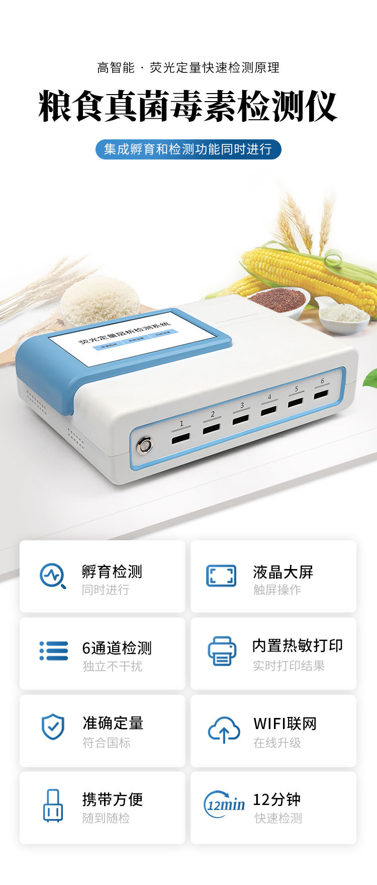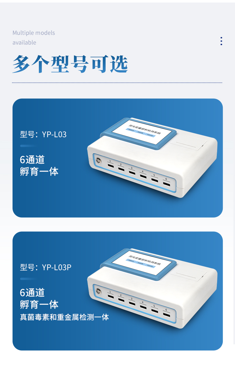 5、6通道設計,可同時進行一種或多種指標的檢測,6個獨立檢測單元,檢測效率高,并且互不干擾;