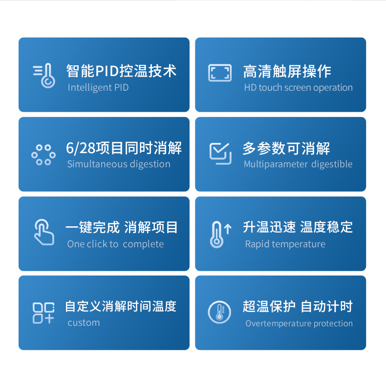 特色功能:一鍵消解、超溫保護、蜂鳴提示、自定義設置、倒計時功能;