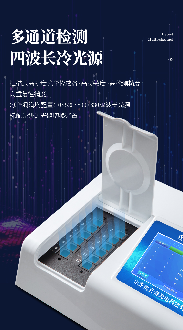 3、四波長(zhǎng)冷光源,每個(gè)通道均配置410、520、590、630nm波長(zhǎng)光源,標(biāo)配先進(jìn)的光路切換裝置,專(zhuān)利光路切換功能可實(shí)現(xiàn)最多64波長(zhǎng),并且所有檢測(cè)項(xiàng)目可實(shí)現(xiàn)所有通道同時(shí)檢測(cè)。