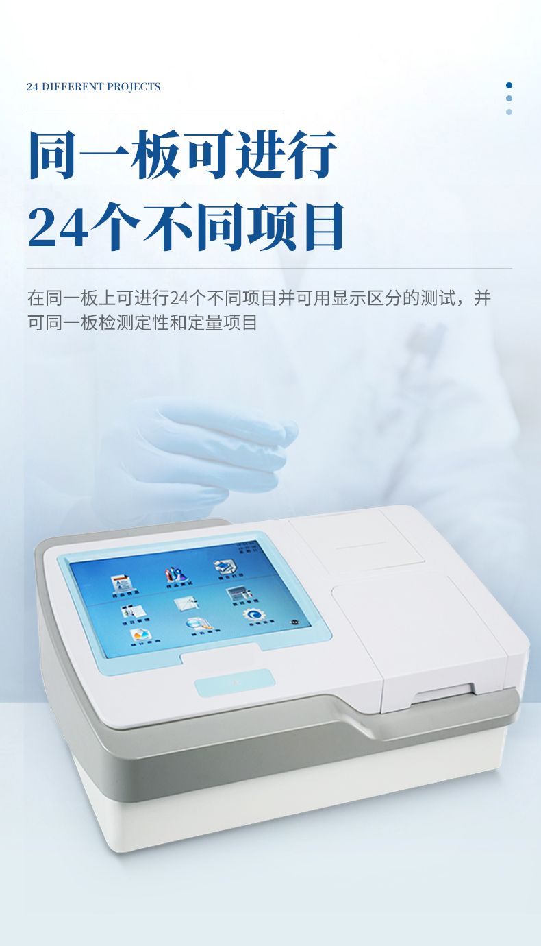 *在同一板上可進行24個不同項目并可用顯示區分的測試,并可同一板檢測定性和定量項目;