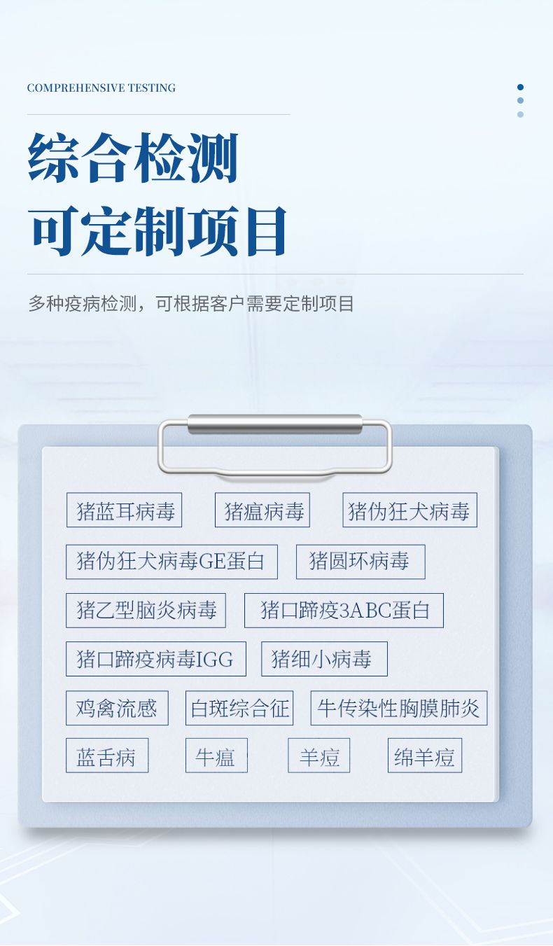 YP-SY96S動物疫病診斷儀是我公司在新推出的一款全新檢測儀器,該系統采用酶聯免疫吸附測定法與相應試劑配合可定性或定量進行動物疫病快速診斷。如:豬藍耳病毒、豬瘟病毒、豬偽狂犬病毒、豬偽狂犬病毒gE蛋白、豬圓環病毒、豬乙型腦炎病毒、豬口蹄疫3ABC蛋白、豬口蹄疫病毒IgG、豬細小病毒、雞禽流感、藍舌病、白斑綜合征、牛傳染性胸膜肺炎、牛瘟、綿羊痘和山羊痘等等疫病檢測,并可根據客戶需要定制項目。