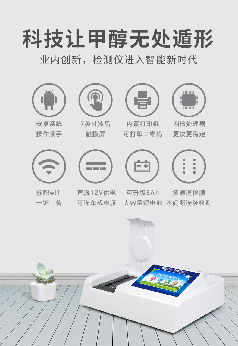 檢測(cè)項(xiàng)目:可快速定量檢測(cè)各類酒中的甲醇的含量,儀器預(yù)留其他項(xiàng)目檢測(cè)程序和端口,根據(jù)日后需求可方便的自主增加檢測(cè)項(xiàng)目。日后可升級(jí)為檢測(cè),水產(chǎn)品,肉制品,面制品的綜合類型儀器。