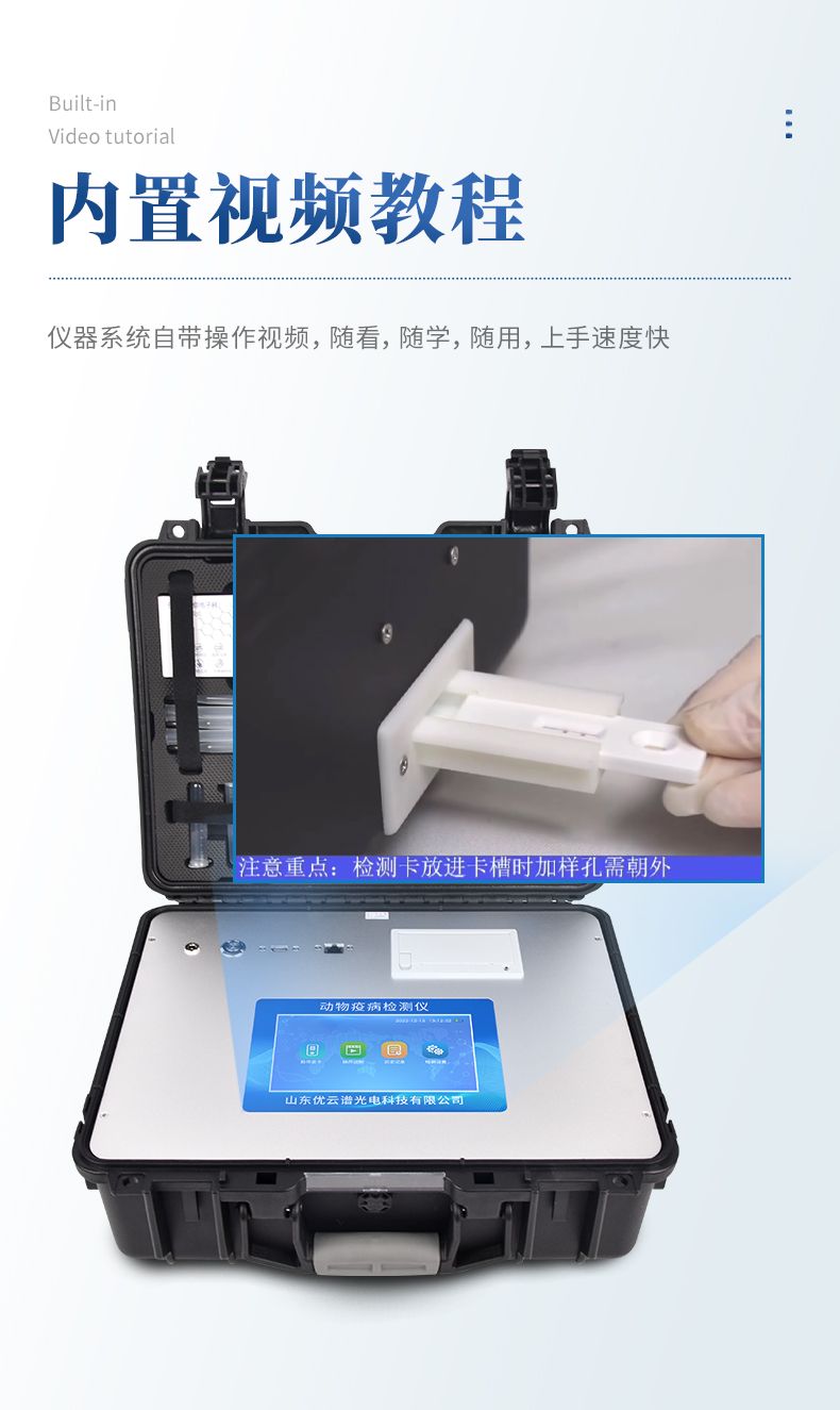動物疫病診斷儀可現場快速檢測豬藍耳病毒、豬瘟病毒、黃曲霉毒素B1、豬偽狂犬病毒、豬偽狂犬病毒gE蛋白、豬口蹄疫3ABC蛋白、豬口蹄疫病毒IgG、豬細小病毒、雞禽流感等快速檢測、鹽酸克倫特羅、萊克多巴胺、沙丁胺醇、恩諾沙星、氯霉素、鏈霉素、三聚氰胺、慶大霉素、磺胺類、喹喏酮類、呋喃類、四環素類、阿莫西林、孔雀石綠、黃曲霉毒素(B1,B2,G1,G2,M1,M2 )、疾病診斷、環丙沙星、紅霉素、土霉素、喹乙醇、已烯雌酚等項目的定性檢測。