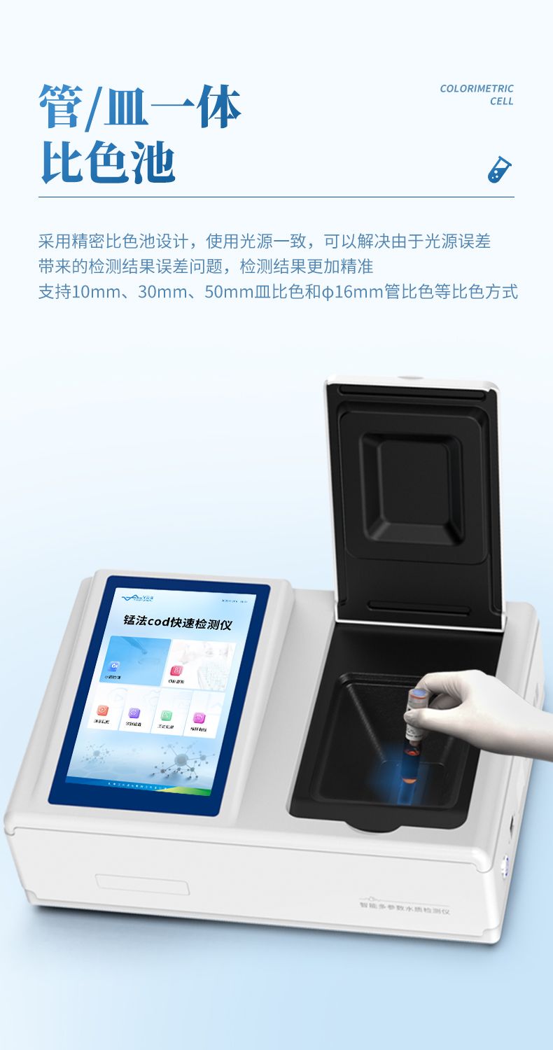 3、采用精密比色池設計,使用光源一致,可以解決由于光源誤差帶來的檢測結果誤差問題,檢測結果更加精準。