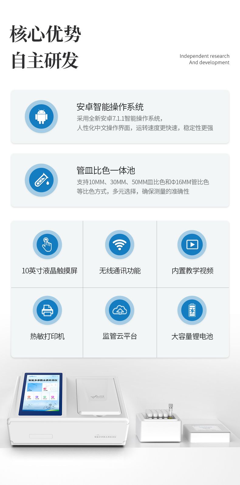 5、支持10mm、30mm、50mm皿比色和φ16mm管比色等比色方式,多元選擇,確保測量的準確性;