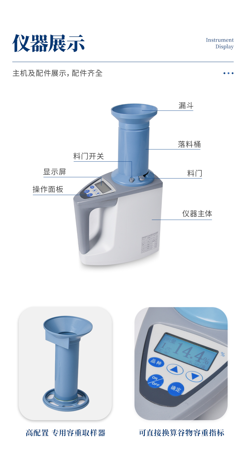 容重換算:獨特的專利容重取樣裝置在精確測量小麥的同時,可以直接換算出小麥容重指標。