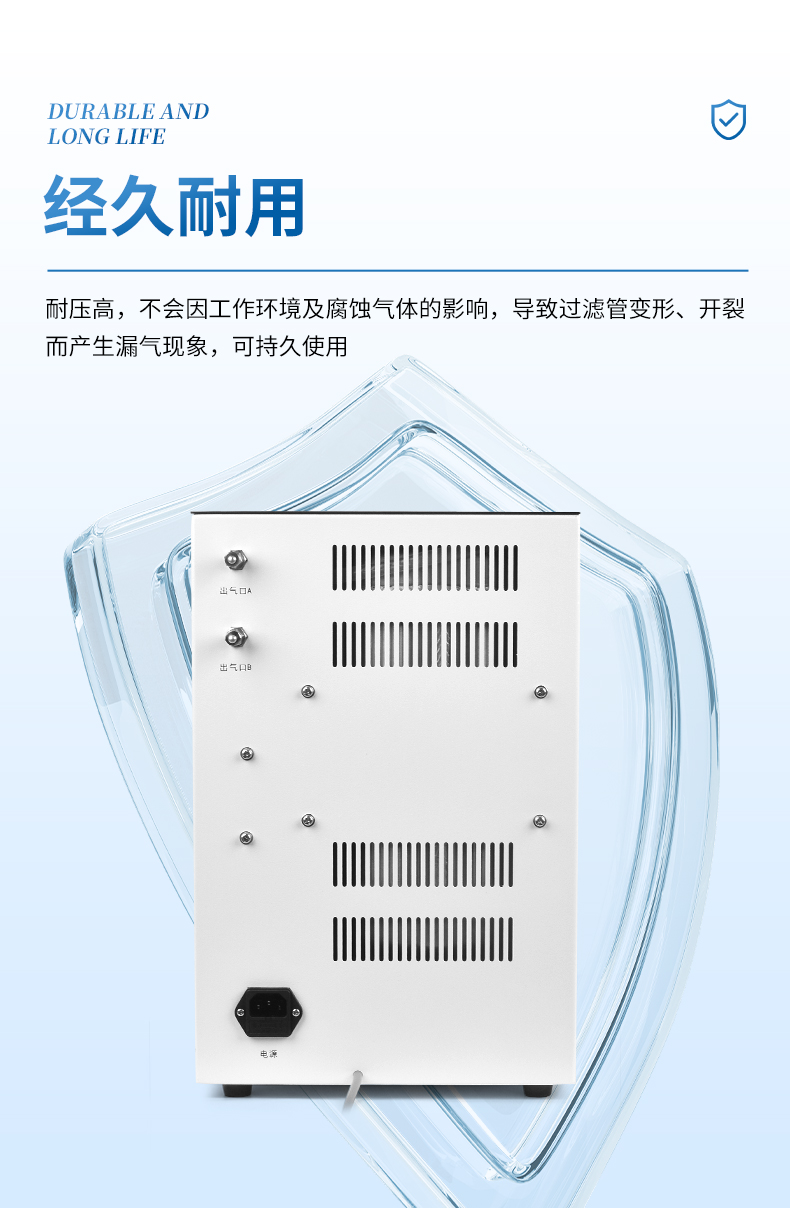 2、FV型亞克力過濾器,內有微量氧脫除劑(不需要活化),氫氣純度更高;儀器內部采用硅橡膠圈(含硫量低),有效提高氣體質量,保證色譜基線平穩。