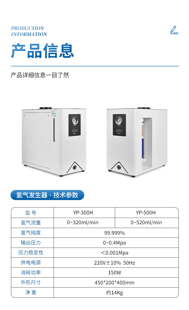 1、氫氣純度: 99.999%