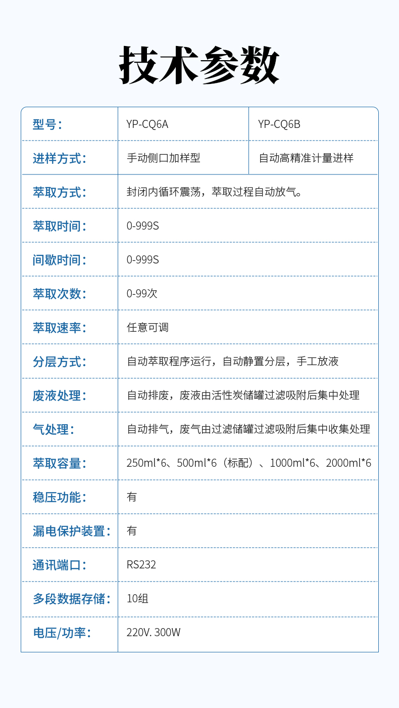 10. 聚四氟乙烯閥門的萃取瓶萃取容量:250ml*6、500ml*6(標配)、1000ml*6、2000ml*6