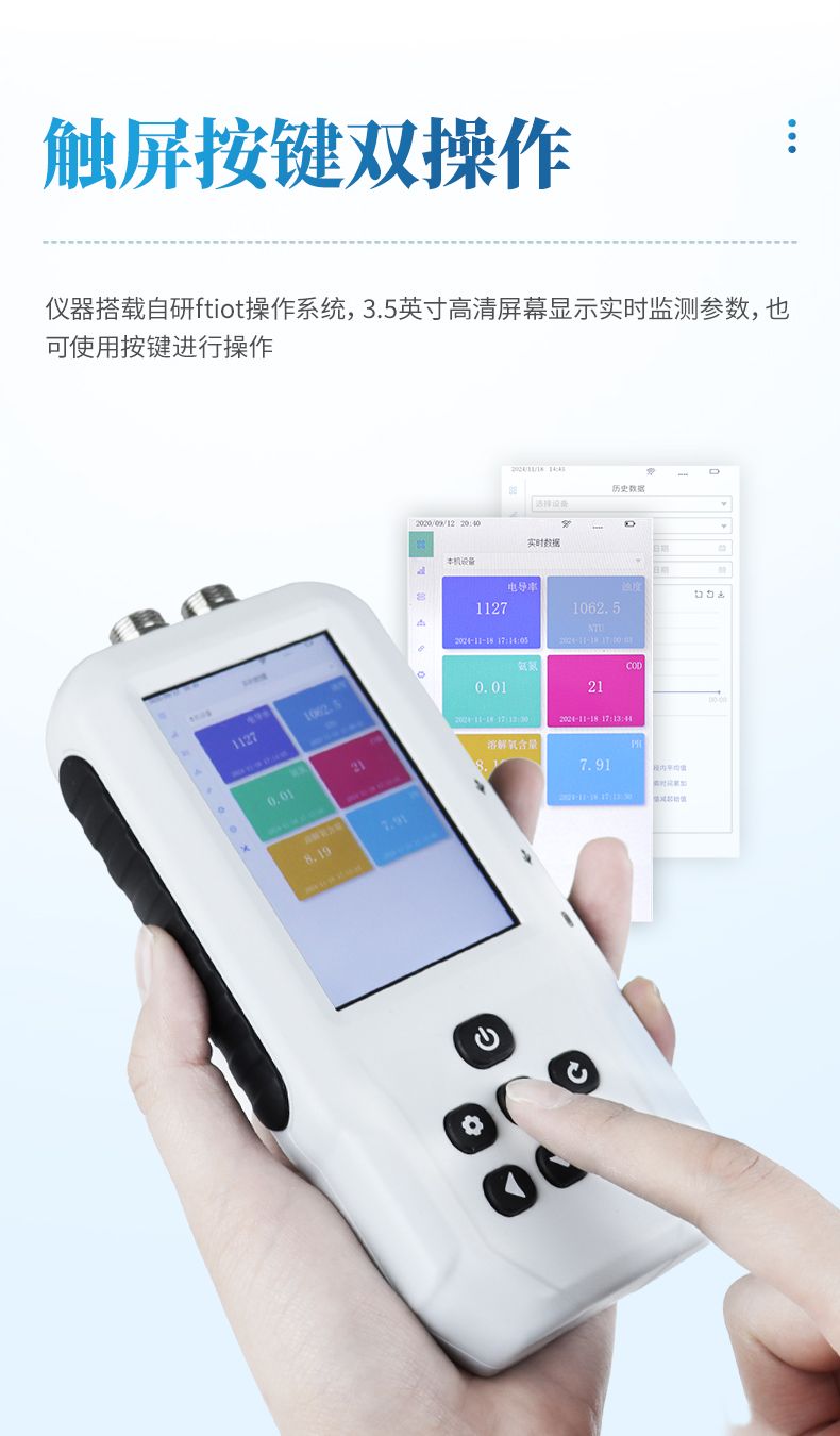 SS11S型號便攜式多參數水質測定儀是一款電極法水質分析儀器,采用全數字電極檢測,可檢測水質的污泥濃度參數。儀器搭載自研ftiot操作系統,操作簡單、性能穩定、測量準確、檢測范圍廣,內置高容量充電鋰電池,便于用戶在野外、實驗室隨時進行水質檢測工作。