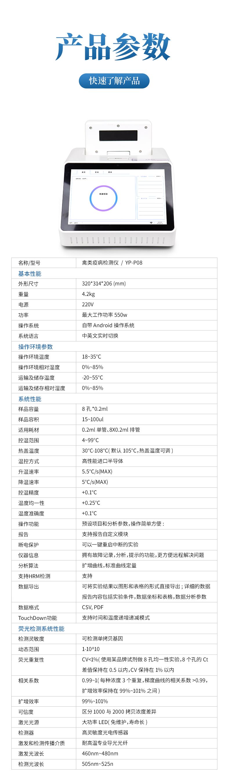 軟件功能:熒光定量 PCR 系統軟件;實時擴增反應曲線功能;特定標本實時反應曲線顯示;數據分析功能;陰陽結果自動判定功能;圖形化顯示功能。