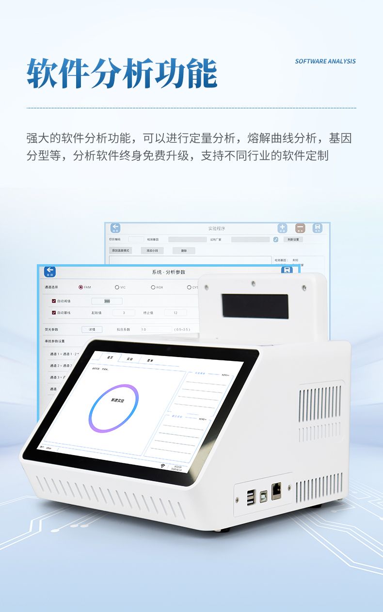 8、強大的軟件分析功能,可以進行定量分析,熔解曲線分析,基因分型等,分析軟件終身免費升級,支持不同行業的軟件定制;