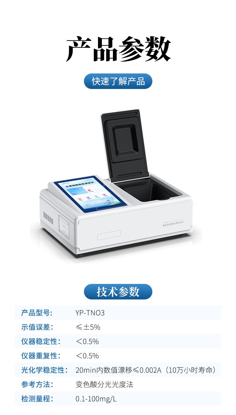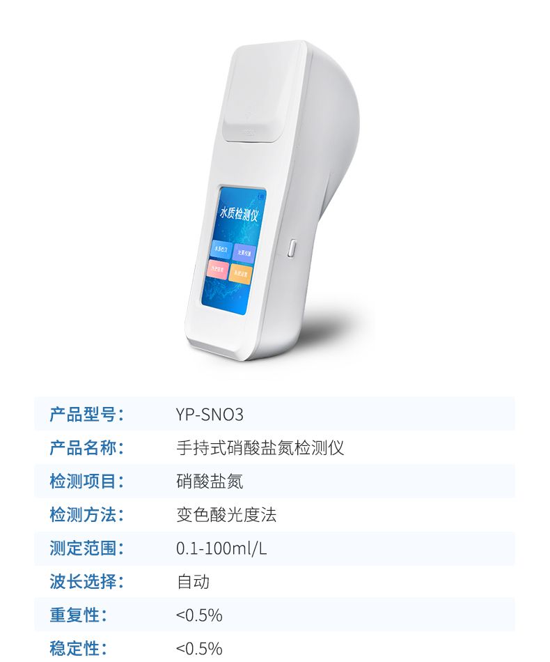 硝酸鹽氮檢測儀是參考方法《變色酸光度法》研發(fā)設(shè)計(jì)制造,主要檢測水質(zhì)硝酸鹽氮濃度指標(biāo),兼具智能數(shù)據(jù)分析功能,圖表、列表顯示數(shù)據(jù),分析一目了然;高清晰度彩色液晶觸摸顯示屏,Android智能操作系統(tǒng),中文顯示界面,中英文鍵盤,人性化操作,使用更簡單。