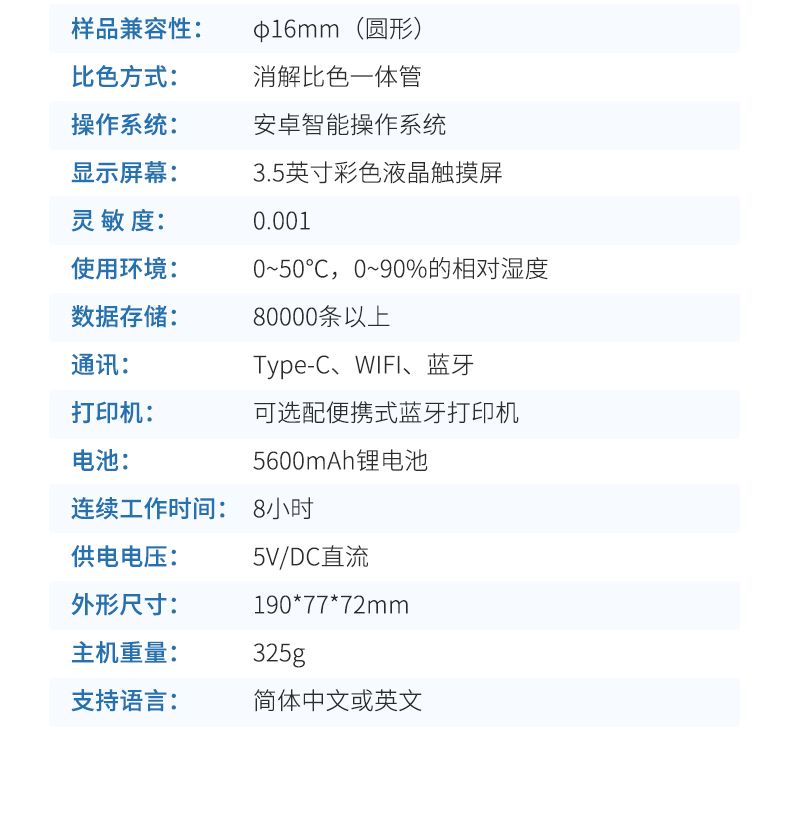 5、支持10mm、30mm、50mm皿比色和φ16mm管比色等比色方式,多元選擇,確保測量的準(zhǔn)確性;