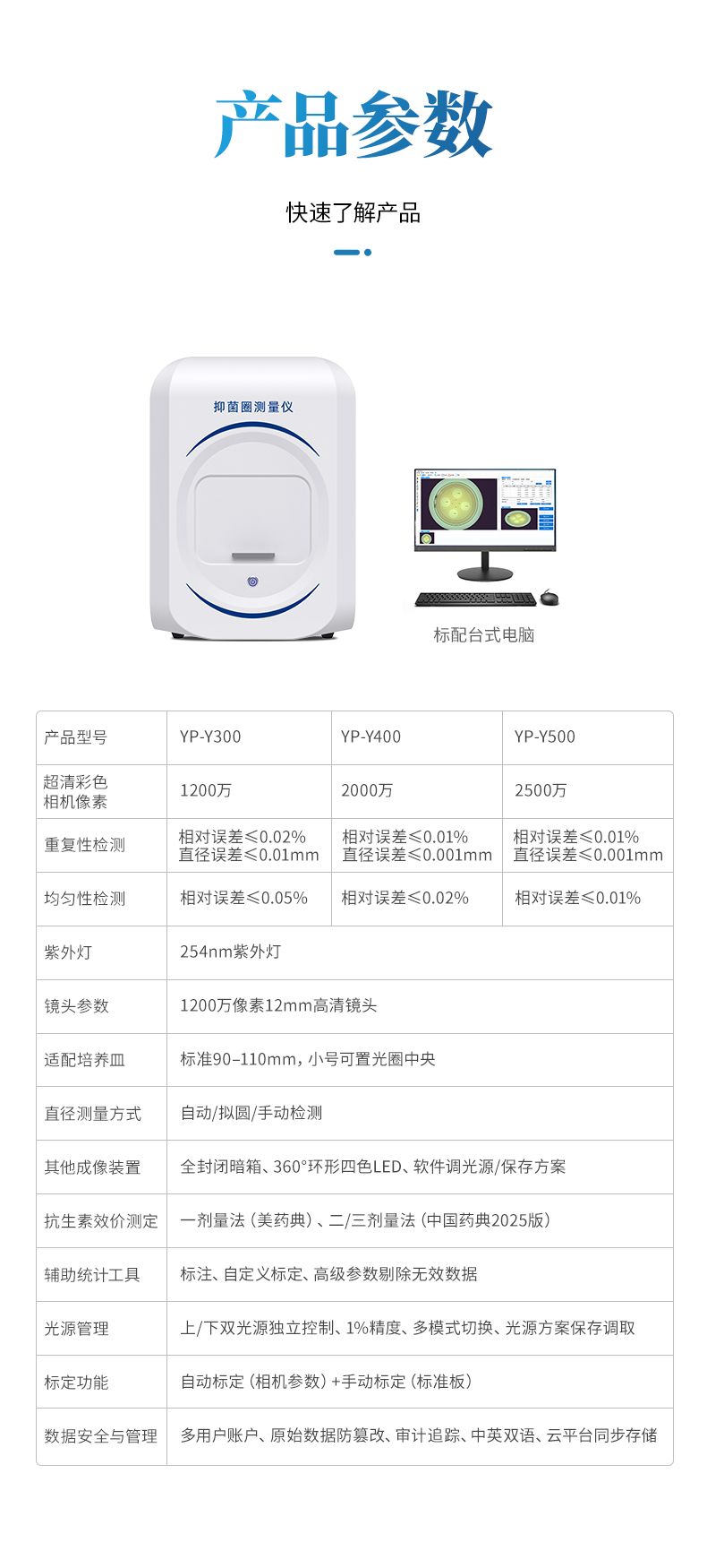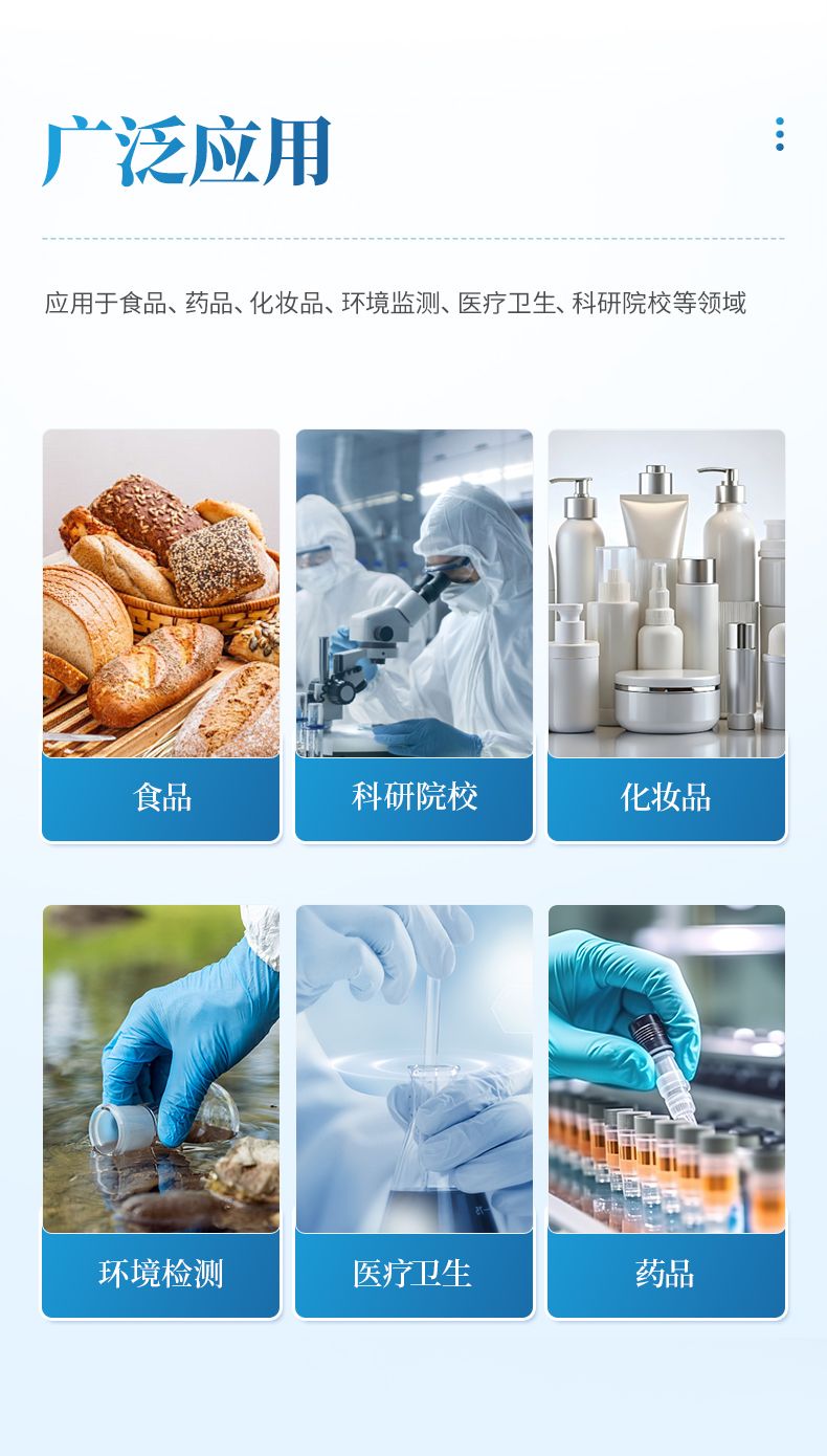 本產品為集圖像采集、數據處理與統計分析于一體的抑菌圈測量儀,廣泛應用于食品、藥品、化妝品、環境監測、醫療衛生、科研院校等領域。該儀器采用先進數字圖像處理技術,能快速、精準、全自動地測量培養皿中抑菌圈的直徑,并同步自動完成效價計算,大幅提升實驗操作效率,有效降低人工測量誤差。