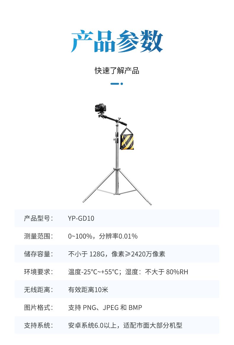 4. 分析主機:10寸彩色觸摸顯示屏,支持自動和手動閾值調節;自動區分植被與非植被區域;支持鏡頭方向調節、焦距設置;支持歷史數據查看、導出及中英文語言切換。