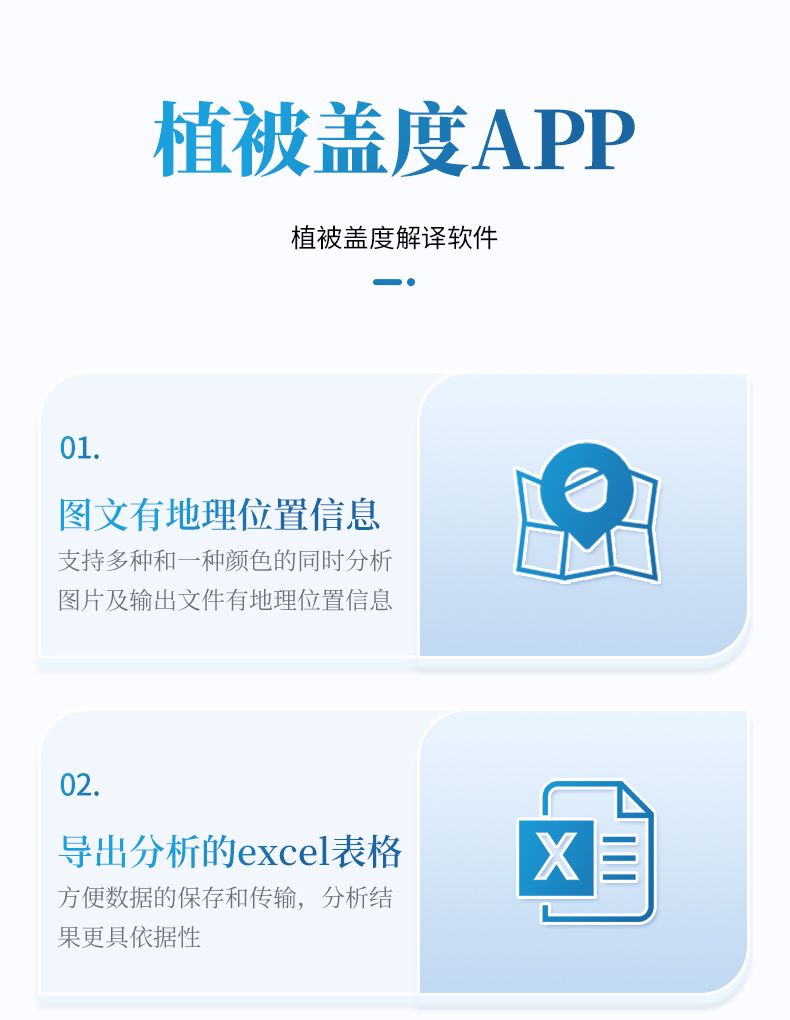 1. 軟件提供豐富的圖像分割模式,軟件內置植被、土壤特征模型,支持廣泛地域植被蓋度和郁閉度測量計算。