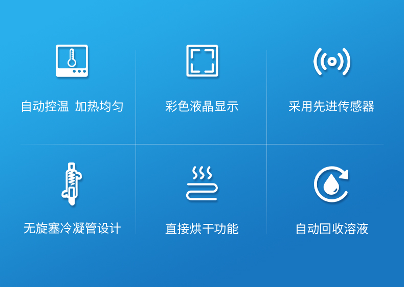 5.★采用先進(jìn)的傳感器,確保設(shè)定的溫度保持不變,使用溶劑不會(huì)達(dá)到燃點(diǎn),提高系