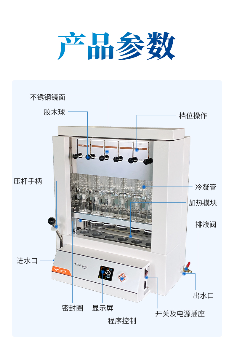 4.深井式加熱模塊:采用全封閉井式電加熱,樣品受熱均勻,溫度在室溫~200℃任意調(diào)節(jié),控溫穩(wěn)定;