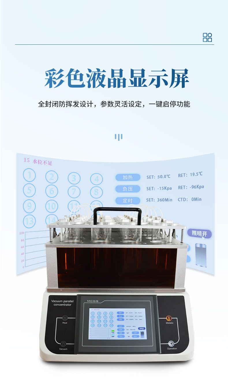 水溫、搖晃轉速、真空度可調,16通道真空獨立開啟,系統(tǒng)支持梯度負壓。