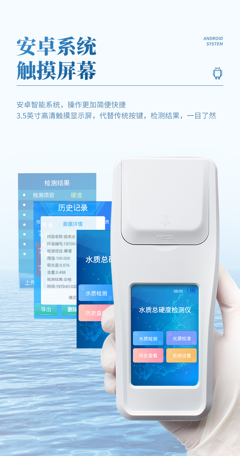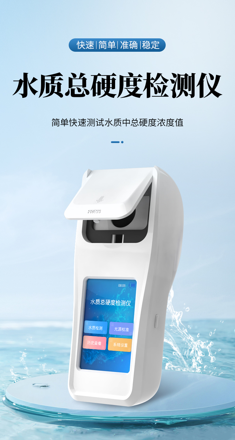 水質總硬度檢測儀可簡單快速測試水質中總硬度濃度值。利用比色法原理配合總硬度檢測試劑快速準確測試水中總硬度含量。